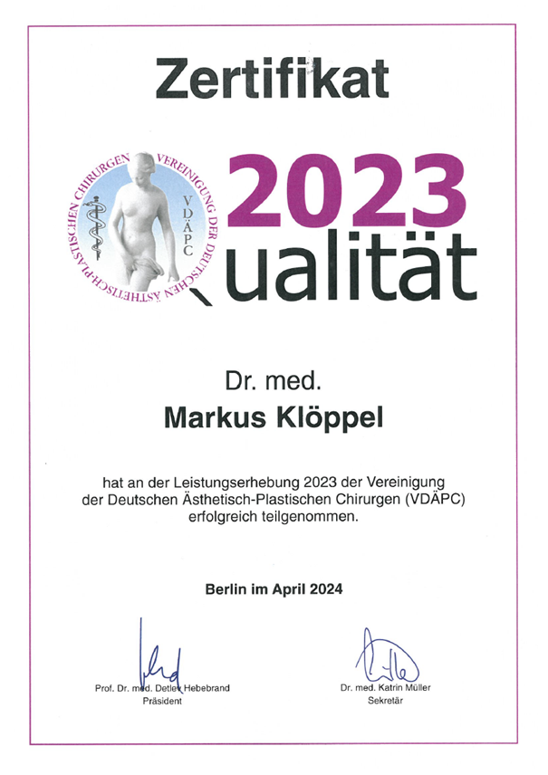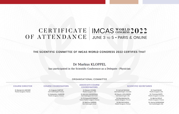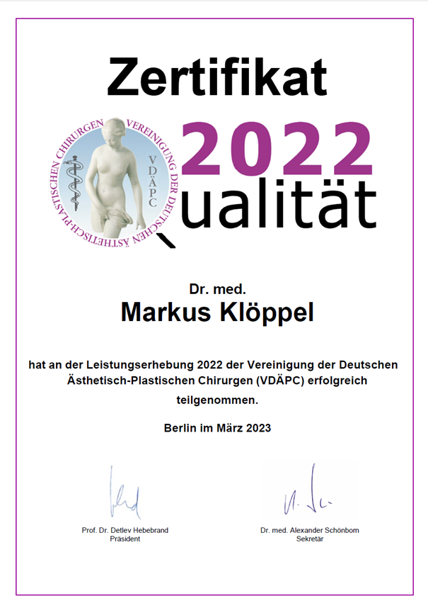 2018 erlangte Dr. Klöppel die aktive Mitgliedschaft bei der ISAPS, die Internationale Gesellschaft für Ästhetische Plastische Chirurgie.
